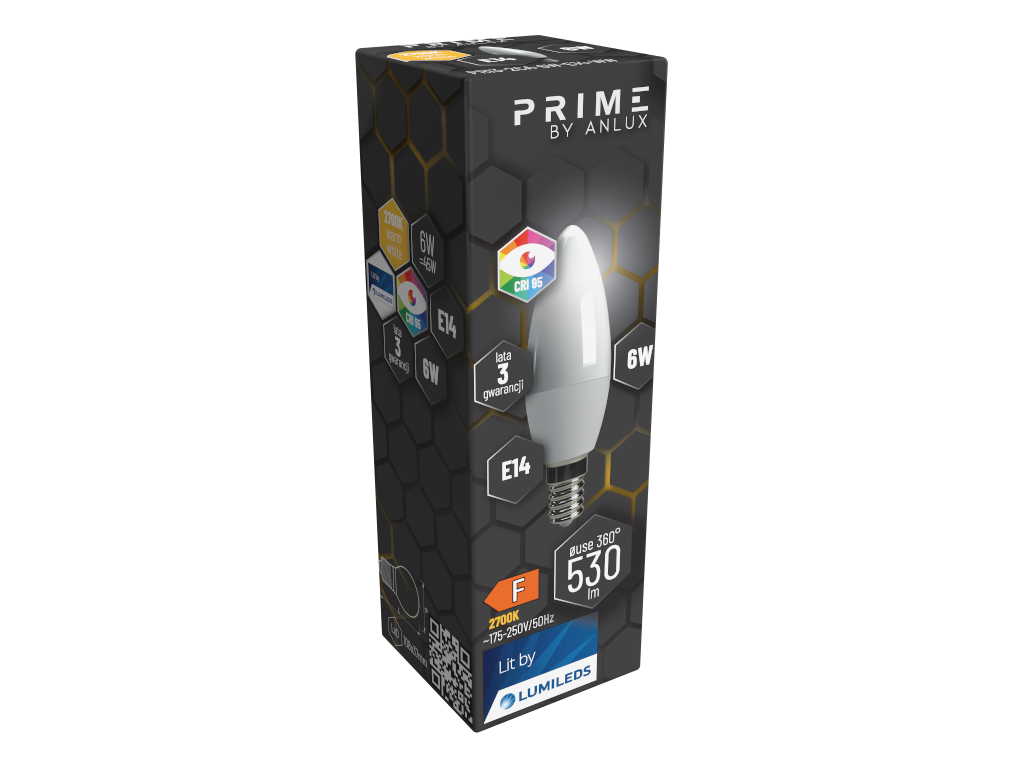 ŻARÓWKA LED ŚWIECZKA 6W E14 230V CIEPŁA BIAŁA 3 LATA GW. PRIME BY ANLUX