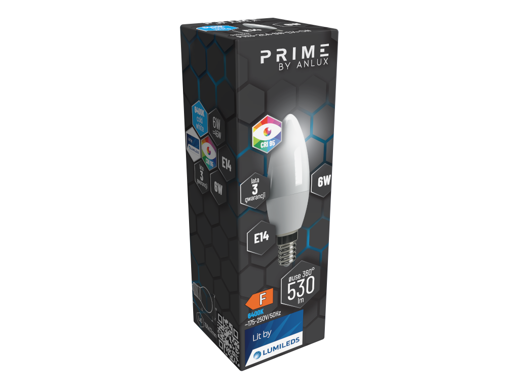 ŻARÓWKA LED ŚWIECOWA 6W E14 230V ZIMNA BIAŁA 3 LATA GWARANCJI PRIME BY ANLUX