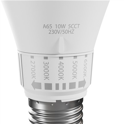 Źródło LED GLS 13 W z możliwością zmiany barwy światła (CCT) o trzonku E-27 oraz o kształcie tradycyjnej żarówki. Dzięki możliwości zmiany temperatury barwowej (CCT) zakresie 2700 / 3000 / 4000 / 5000 / 6500K możemy dopasować barwę światła w zależności od potrzeb i preferencji. Charakteryzuje się wysoką skutecznością świetlną 115 lm/W. Szeroki kąt świecenia 270° zapewnia równomierne oświetlenie pomieszczeń.